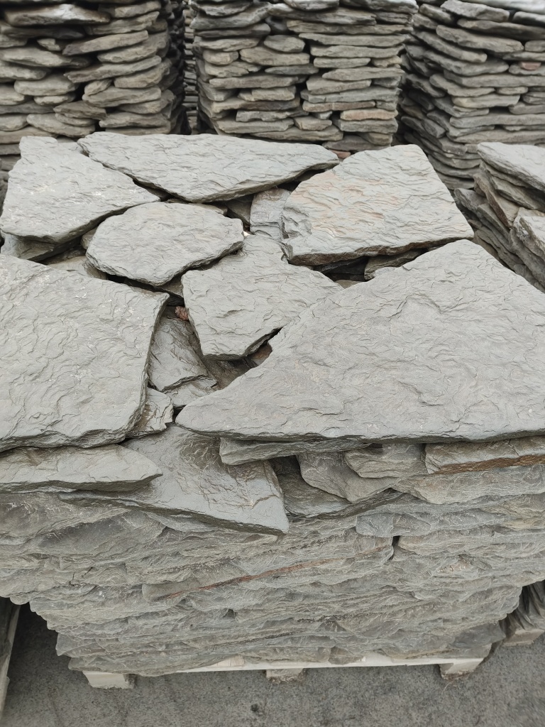 Плитняк песчаник дракон серо-зелёный галтованный для облицовки цоколя, отмостки 20-35 мм